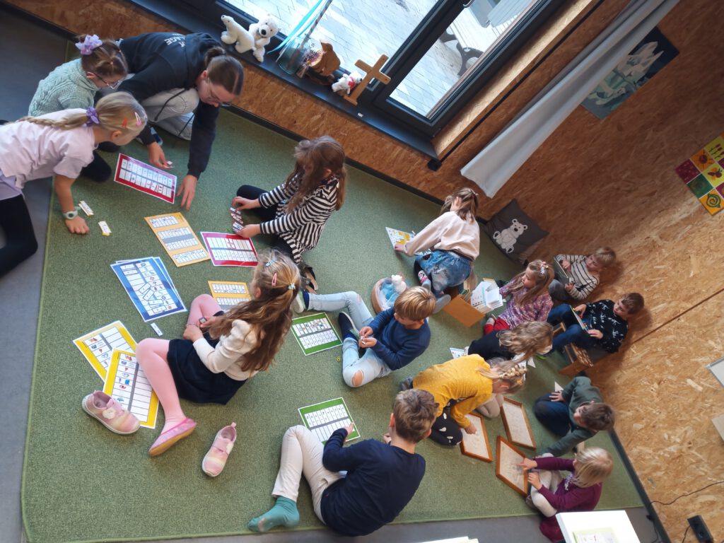 Die Wildgänse haben einen neuen Teppich für ihr Klassenzimmer bekommen. Darauf lässt es sich gemütlich lesen, lernen und erzählen.